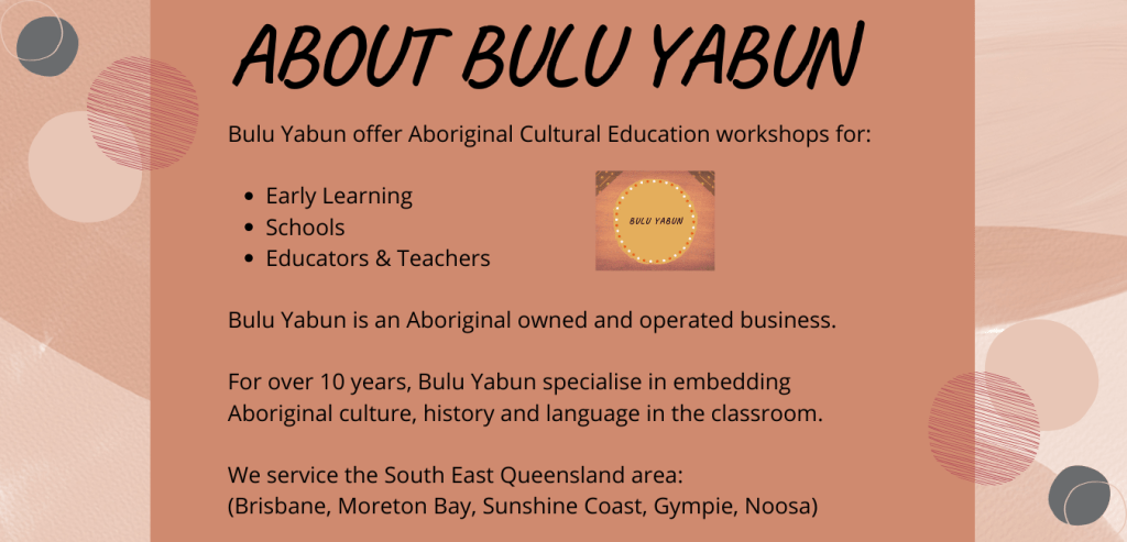 Bulu Yabun provide Aboriginal Cultural Education Workshops within Early Learning, Primary & Secondary Schools for all ages.